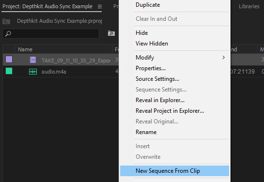 - a corresponding audio file, trimmed to start at the same time as the exported Depthkit clip