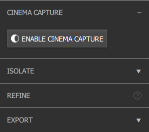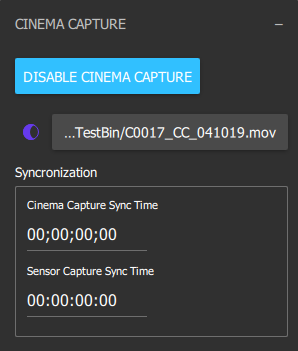 - Expand the Cinema Capture Panel and click the Enable Cinema Capture button to enable the linking of the cinema captures to the sensor captures.