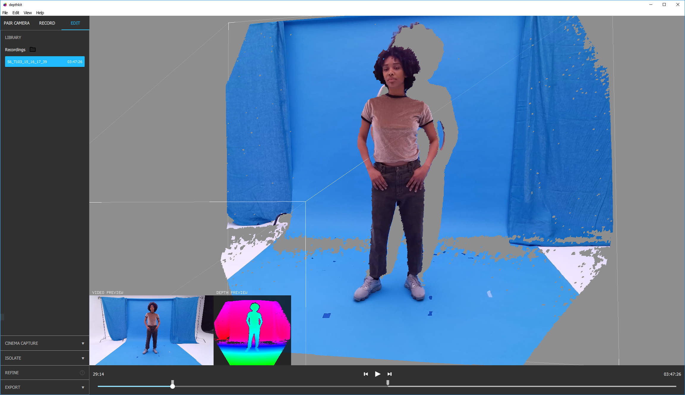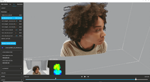 Note that with Depthkit Cinema enabled, moments at the very beginning or end of your clip may be unavailable if there isn't data from both the sensor and the Cinema clip for that time.