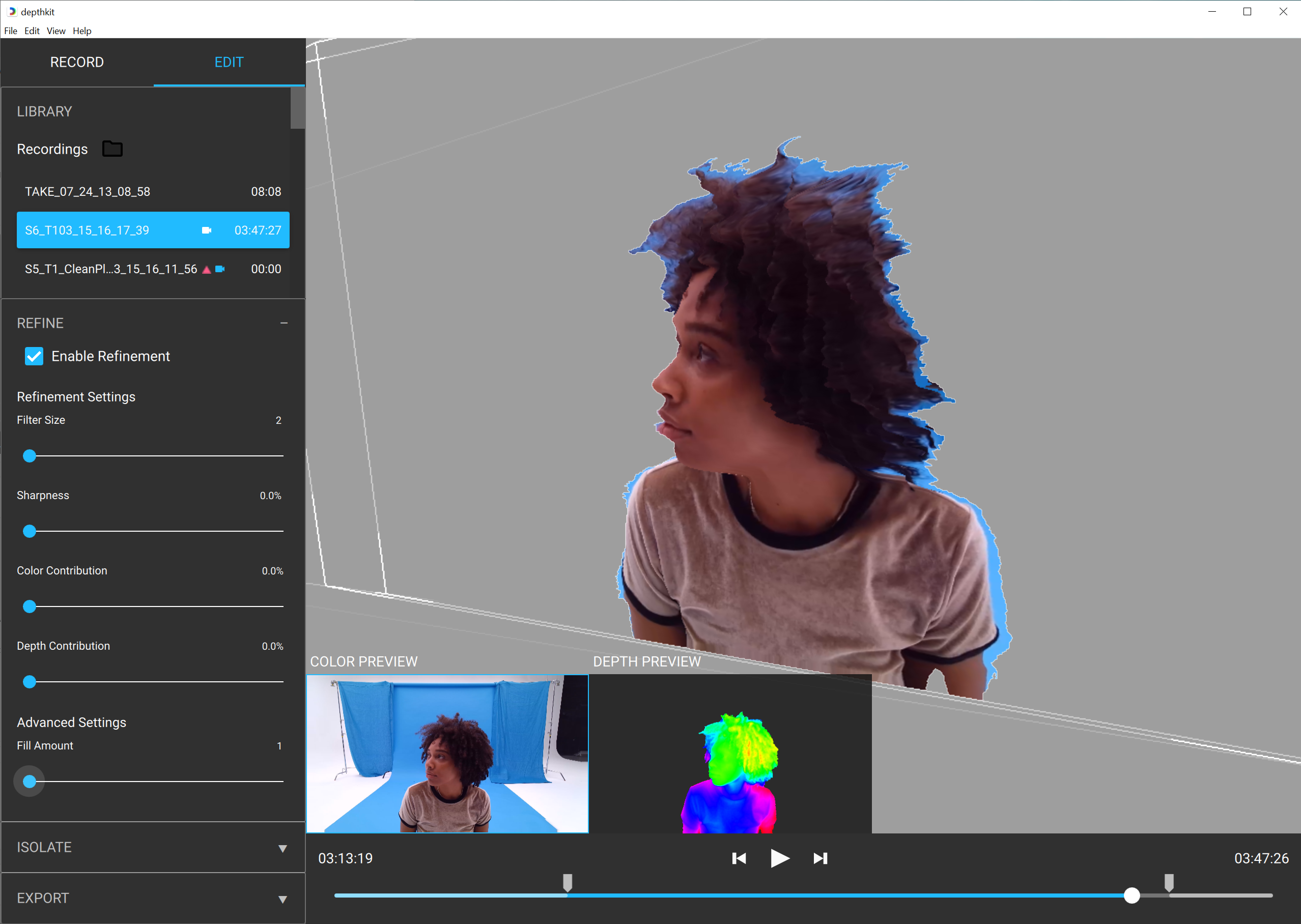 As of v0.7.0, Refinement is no longer used with Depthkit Studio captures.