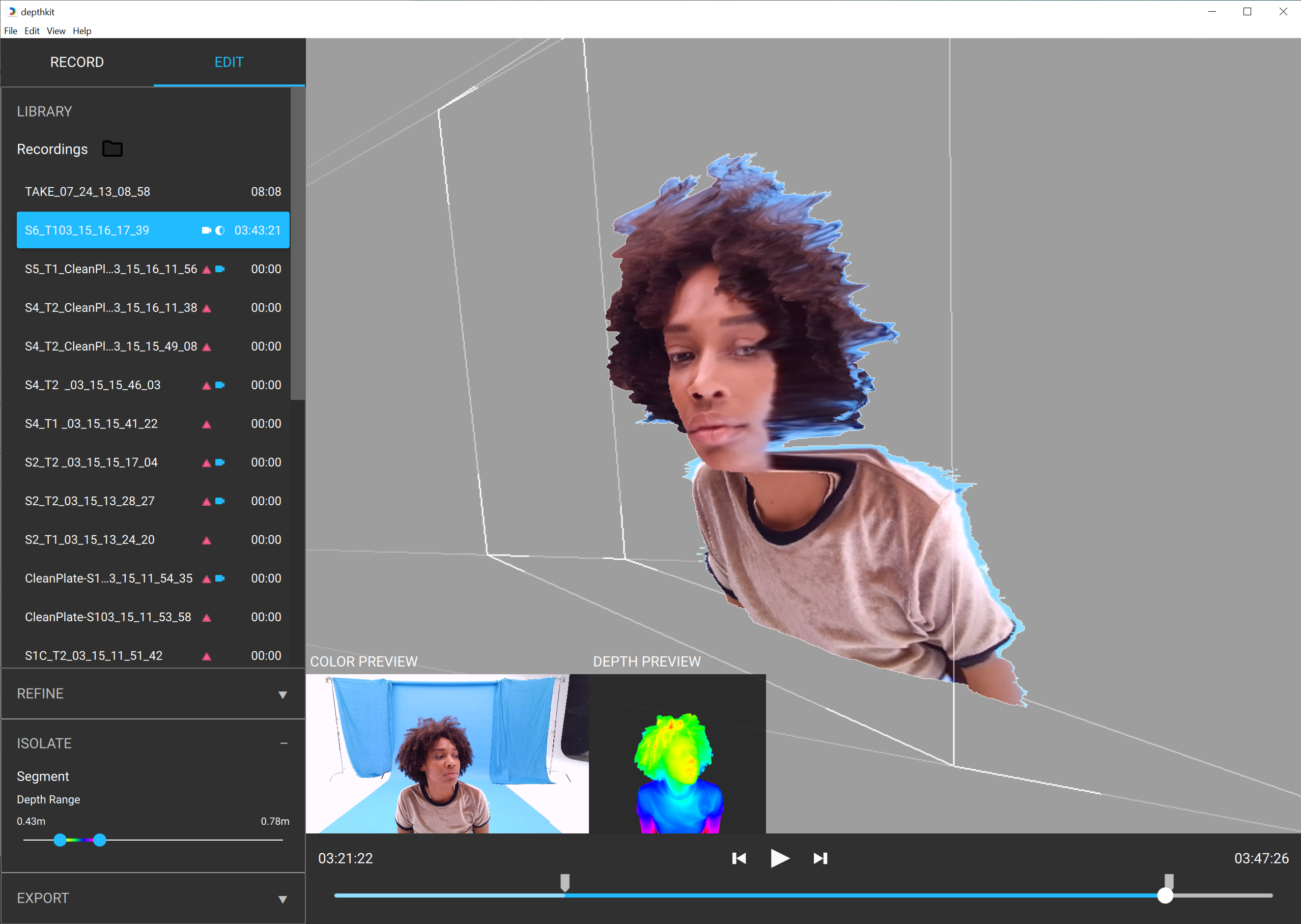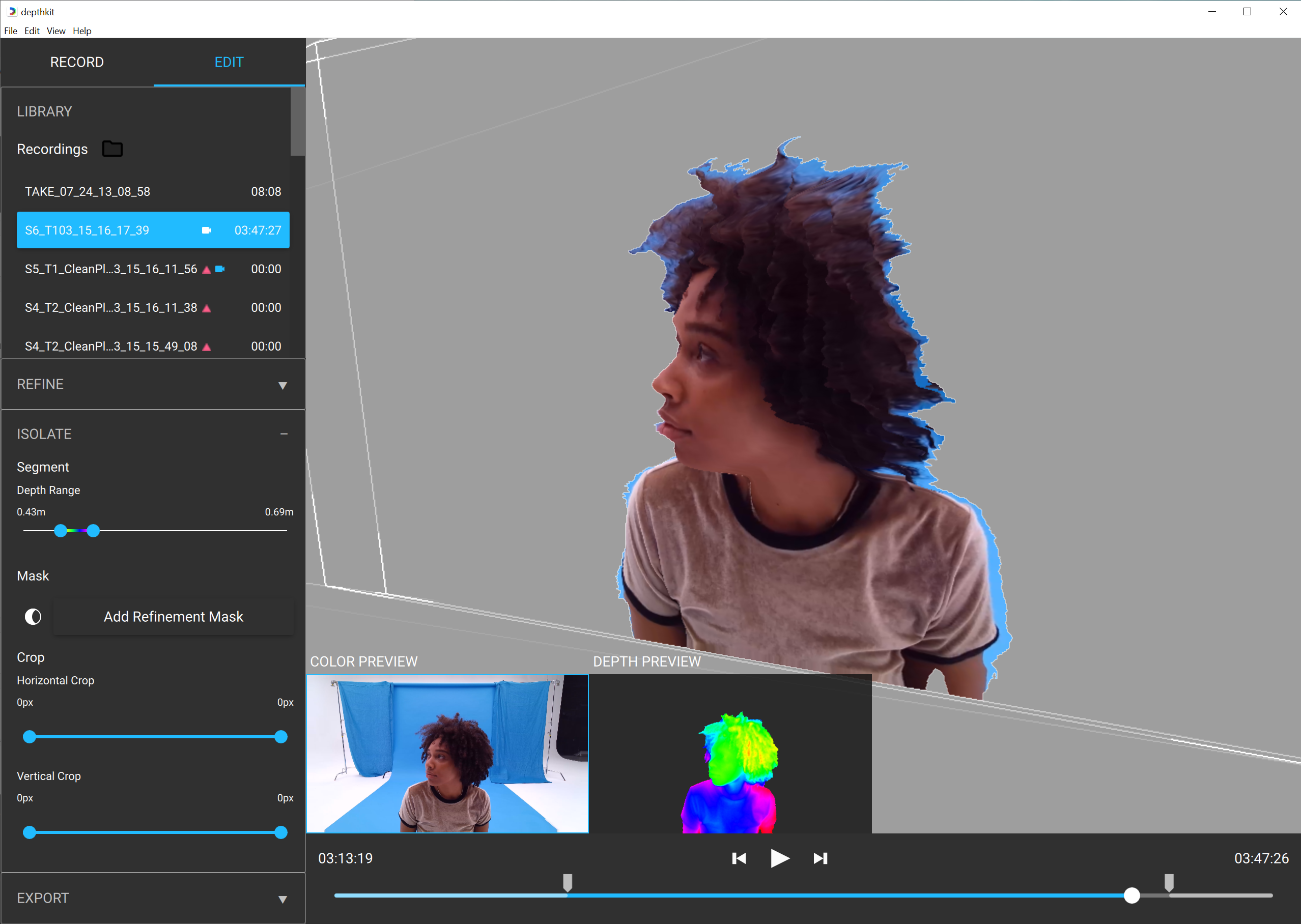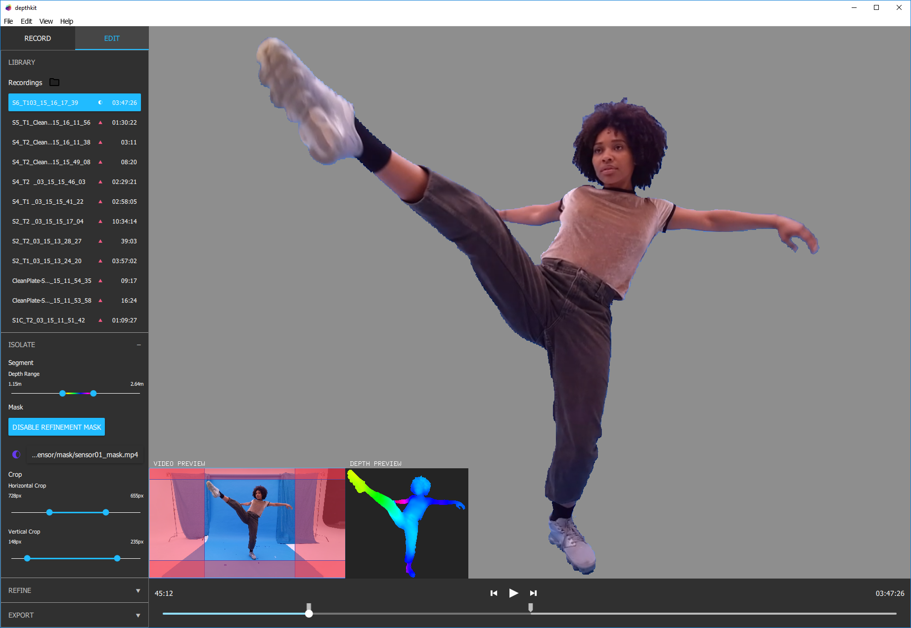 If you are migrating a project which contains Refinement masks from a previous version, they will be ignored, as they are no longer needed for Depthkit's new mesh reconstruction approach.
