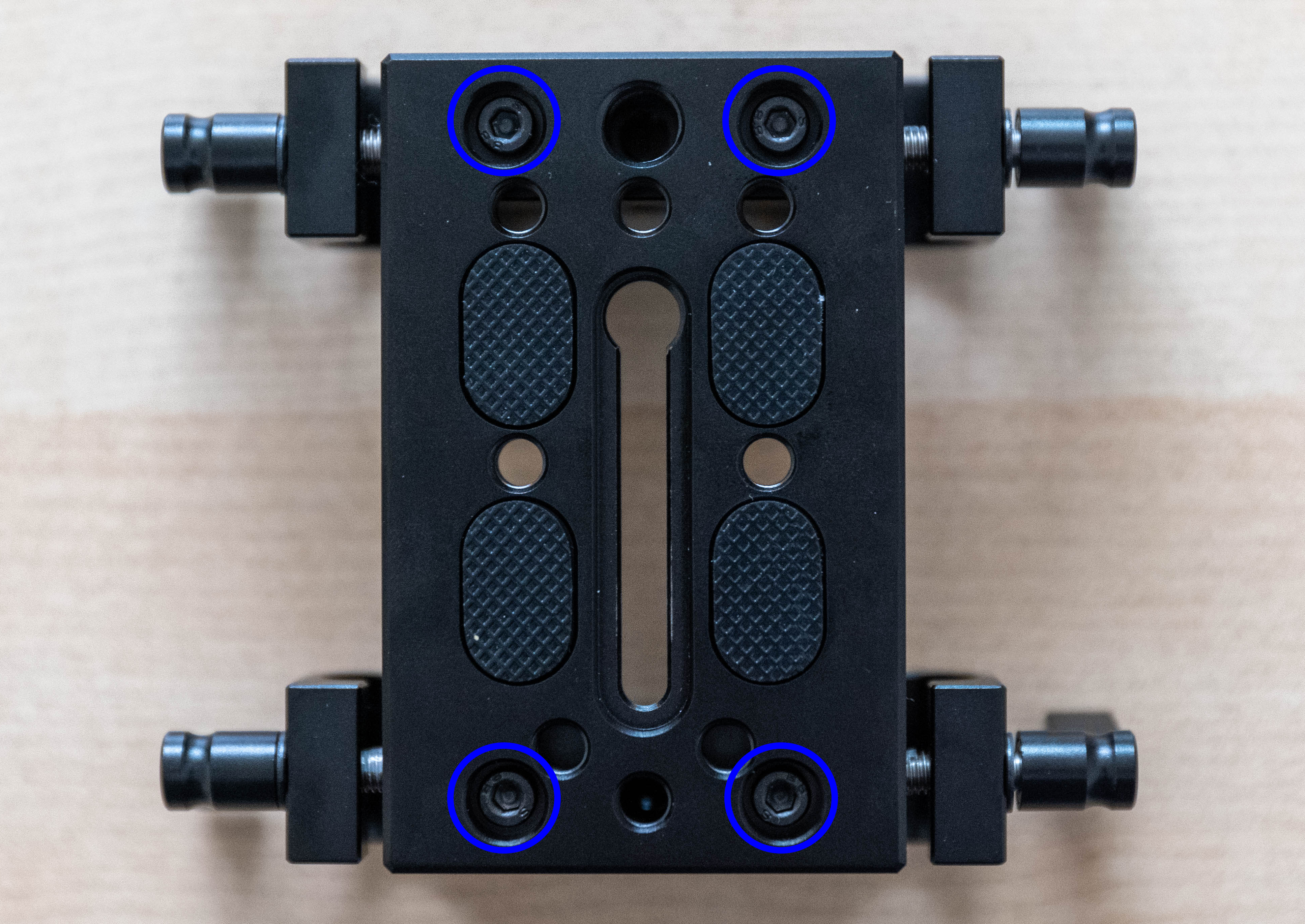 - Take the SmallRig Mounting Plate and remove the four screws pictured below.