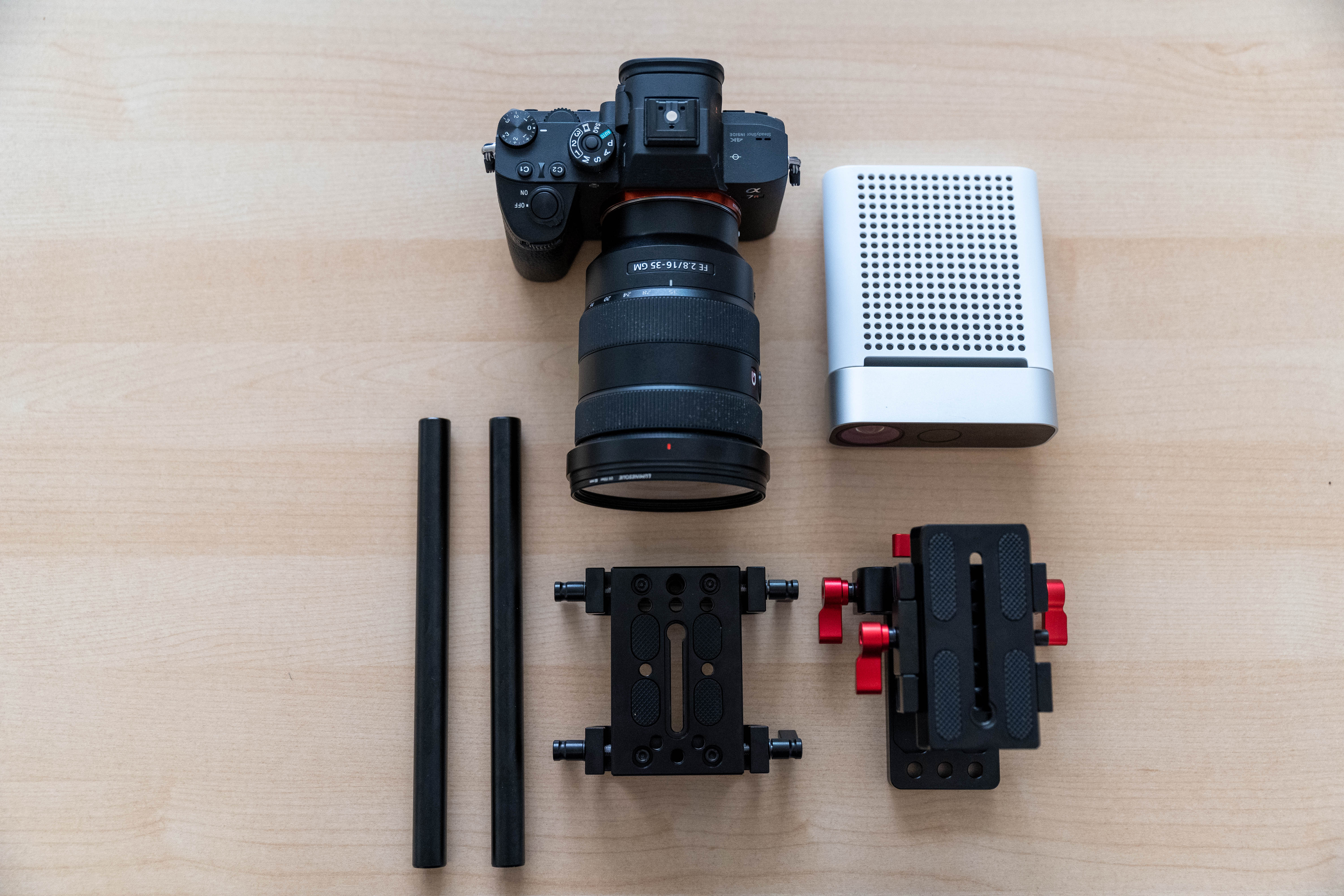 Different camera and sensor combinations will require alternate rigging requirements. Below is a recommendation for the Sony a7R III and the Azure Kinect, but please take your lens size into consideration before purchasing mounting gear.