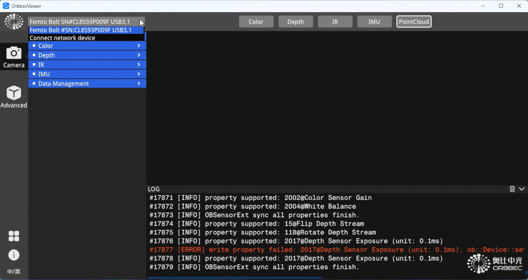 - Unzip and open Orbbec Viewer.