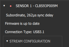 ⬤ : A filled circle indicates that this sensor is connected, and once the sync configuration is detected, this indicates that the sensor is in Subordinate mode. For Femto Bolt sensors, synchronization status will be determined when streaming starts.