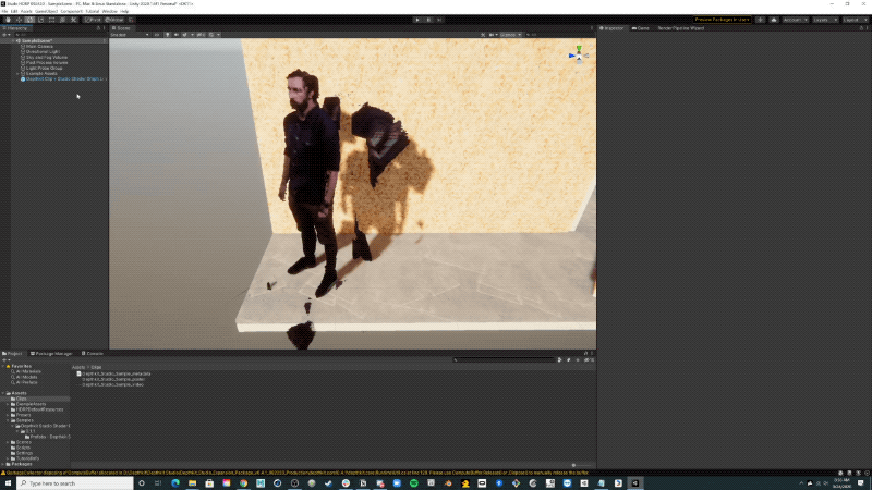 * The **Depthkit Clip + Studio Shader Graph Look** is compatible with URP/HDRP and designed for Look development with the Shader Graph.