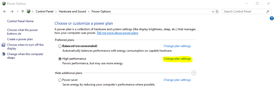 1. You may also need to disable your USB power saving settings. You can find this going to your Control Panel, select Hardware and Sound and then select Power Options. In this menu, click Change plan settings on your power plan.